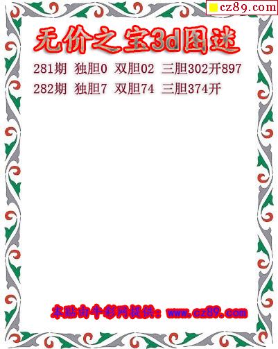首页 > 福彩3D图谜 > 无价之宝送胆2025282期3d图谜(原创)