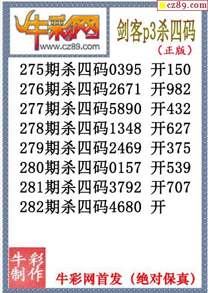 剑客杀码282期体彩P3图谜(原创)
