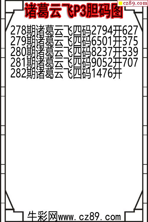 > 25年282期诸葛云飞P3胆码图