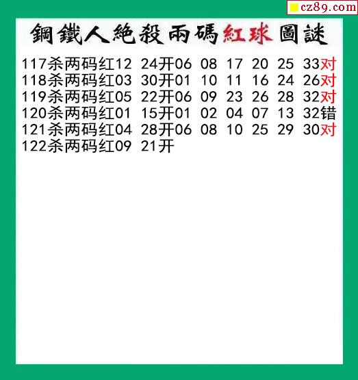 钢铁人杀两码红球122期双色球图谜