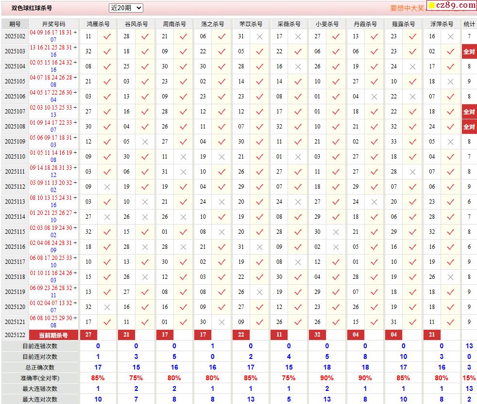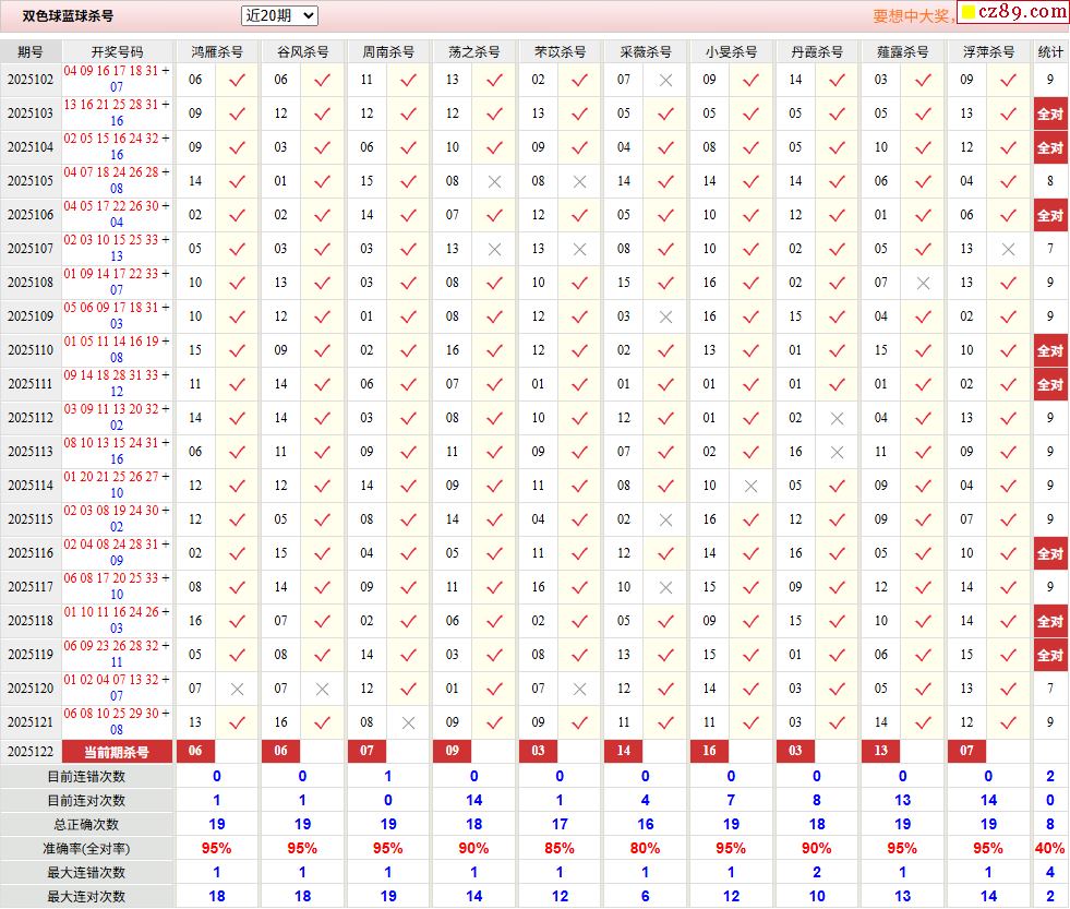 > 122期彩票专家双色球杀红蓝推荐汇总