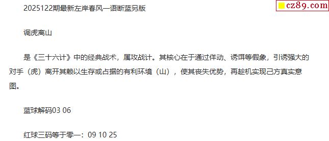 25年双色球122期 欧阳小文字谜