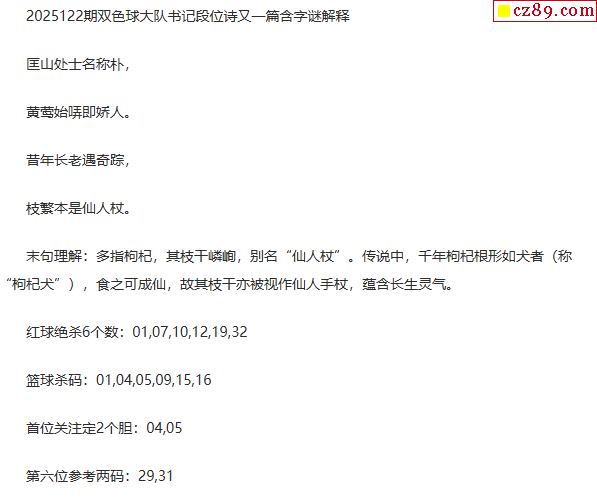 > 25年福彩双色球122期 大队书记段位诗另一篇